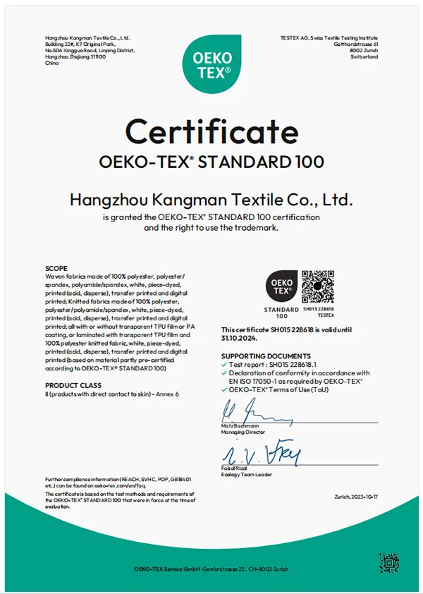 Kangman Textile har 30 års rig erfaring og historie med tekstiltryk og farvning, med service, kvalitet, omkostningseffektivitet og produktinnovation og -udvikling som kernekonkurrenceevnen, er forpligtet til forskning og udvikling af high-end stofprodukter. K&M textile har også sin afhængige farvningsfabrik, internt testcenter, et fremragende R&D-team og et aktivt salgsteam, der kan designe og udvikle stoffer i henhold til kundernes krav. Samtidig har vi et komplet udvalg af stofprodukter, en række gratis A4-prøver, som du kan vælge.